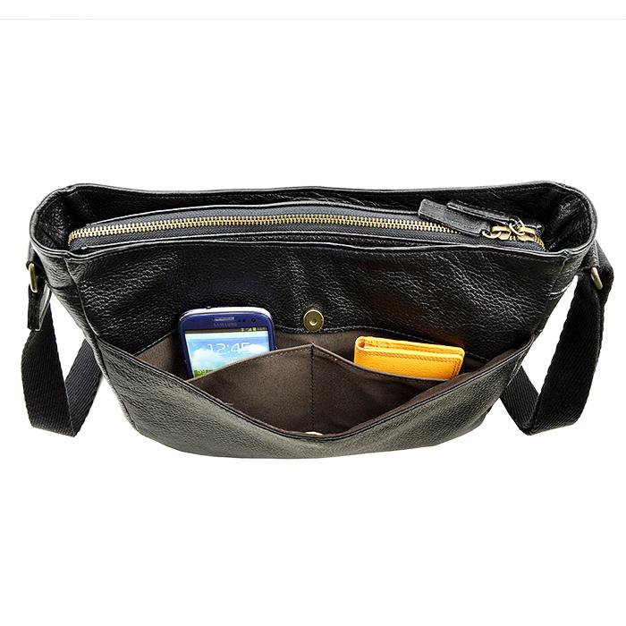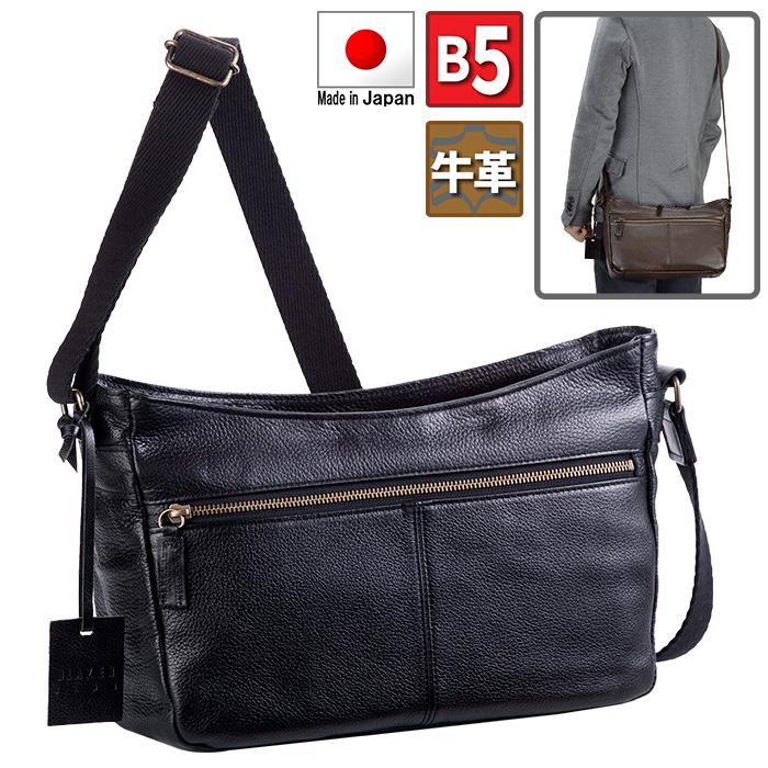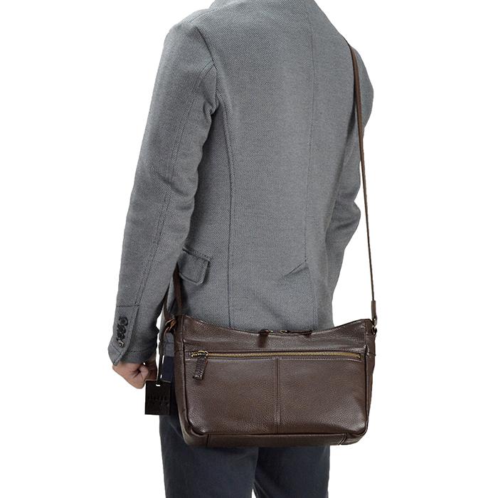 ◆雰囲気の良いシボ型押しの本革製メンズショルダーバッグ