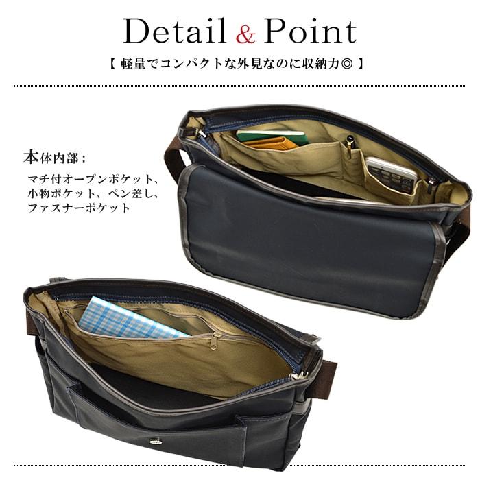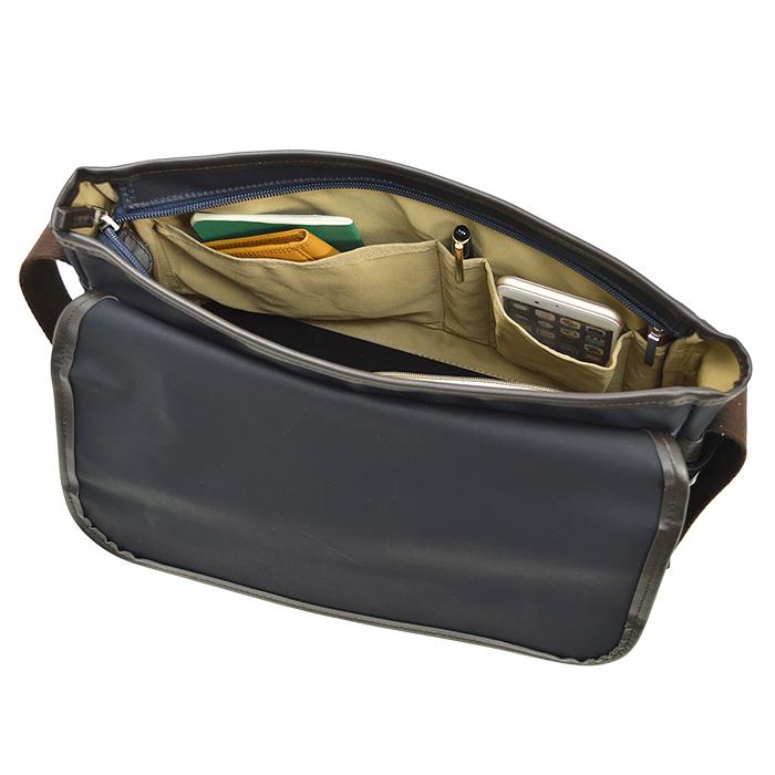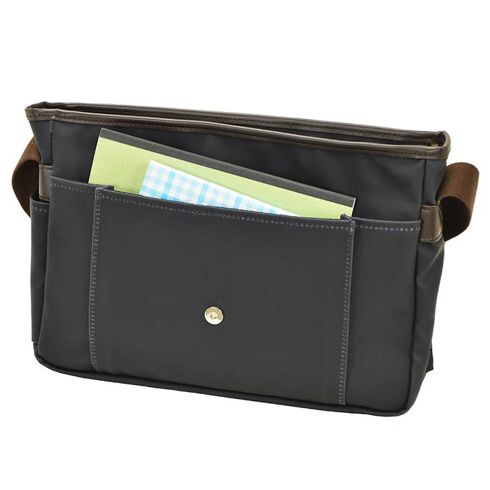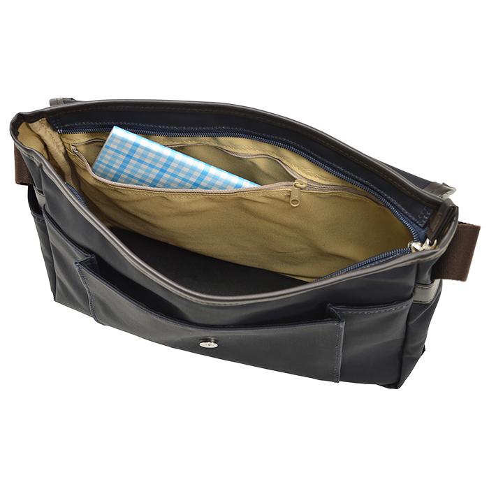 本体内部マチ付きオープンポケット、小物ポケット、ペン差し、ファスナーポケット