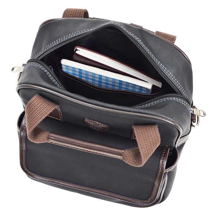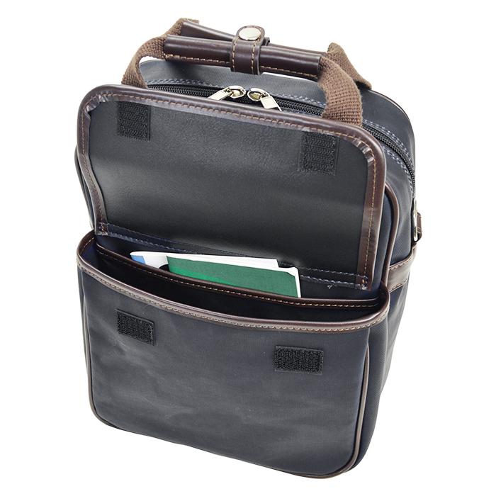 ◆通勤、旅行、ショッピング。自由に使える紳士的デザインが印象的な3wayバッグ。◆A5ファイル(24.2×15.8cm)が収納可能!観光やショッピングなど自由に使えるサイズ。◆手持ち、リュック、ショルダーとして持ち方を変えられる(3way仕様)ので、場所を選ばずにご使用頂けます。◆多様なポケットがあるので、小物やノートなど整理整頓がしやすい機能が充実!◆帆布にPVCをコーティングしてあるので不意の雨にも安心。◆色は2色展開!落ち着きのある紺、軽やかで柔らかい印象のあるベージュ。