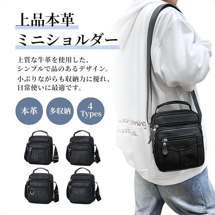 Shoulder bag, square, vertical, genuine leather, cowhide, leather, smartphone pouch, crossbody, shoulder bag, handbag, mini, compact, small, multiple compartments, simple, men's.