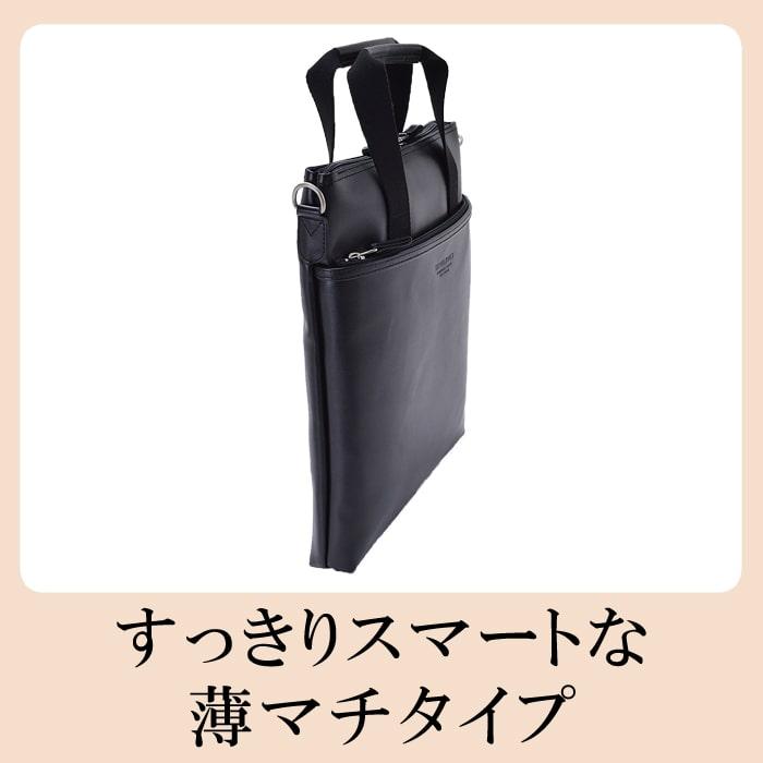 ◆ 薄マチで大きく、便利な2WAYタイプのショルダーバッグ。◆ 世代、男女問わず使いやすい薄マチでシンプルなデザイン。◆ A4ファイル対応でデイリーにもビジネスにも使える充実の収納力。◆ 丈夫で扱いやすい軽量合皮を使用。◆ 季節やシーンを関係なく使えるオールラウンダー。