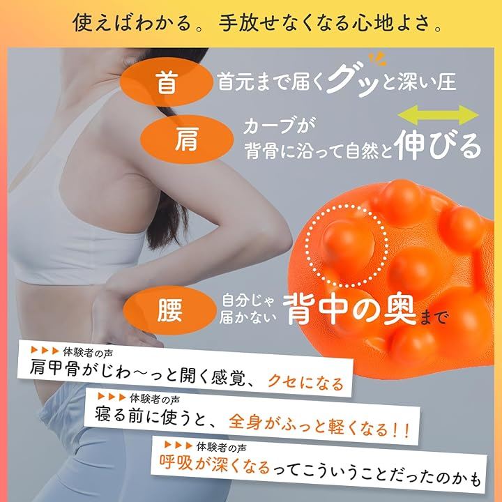 肩甲骨はがしの専用設計:整体理論に基づいた特殊カーブ構造で、肩甲骨周りの筋肉を効果的にストレッチ
