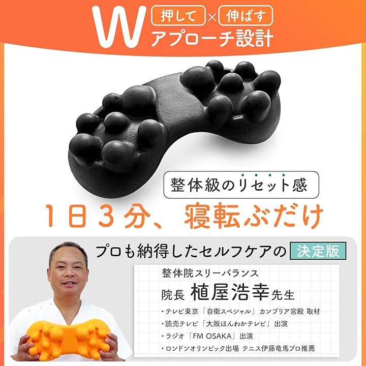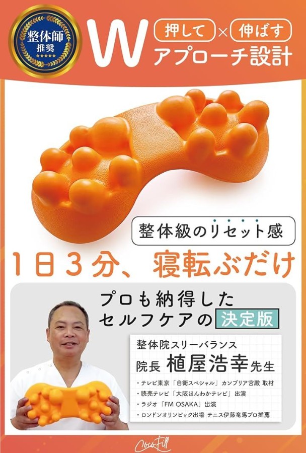 仰向けに5分寝るだけで肩・首・背中を同時にケアする事ができます。