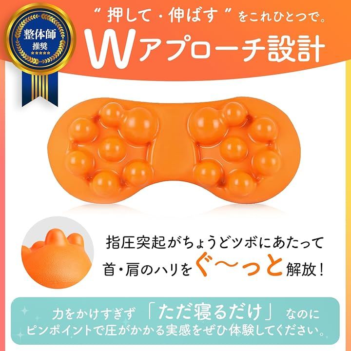 ツボ押し機能:ピロー表面に配置された突起がツボを刺激し、指圧代用として自宅で手軽に。