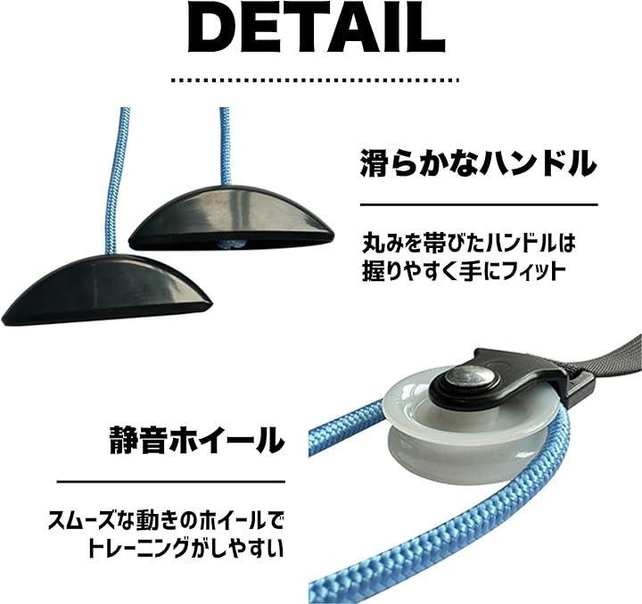 調整機能付きロープと握り心地の良いグリップで、肩甲骨周辺の柔軟性が高まります。