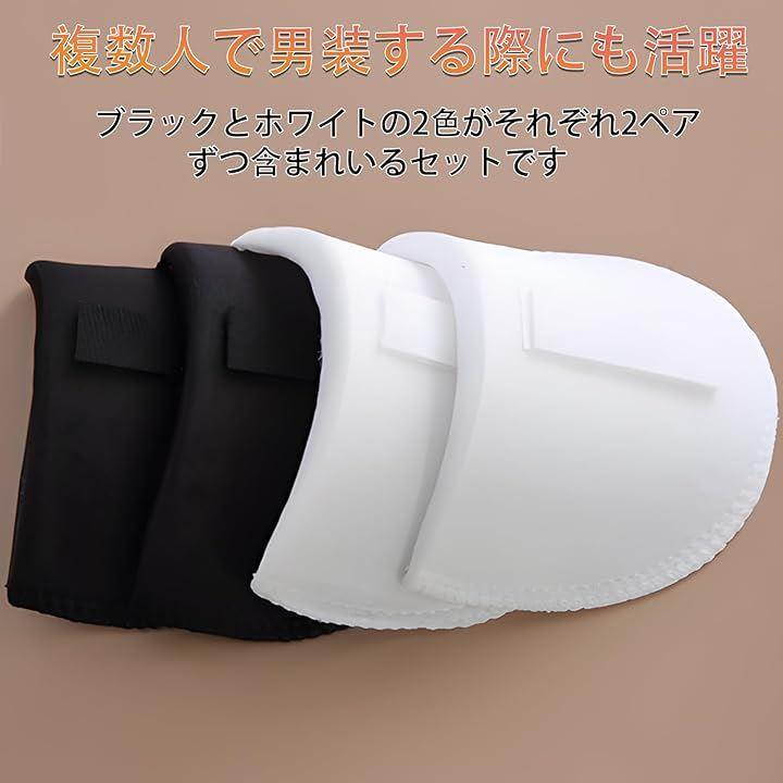 「複数人での使用に最適」ブラックとホワイトの2色がそれぞれ2ペアずつ含まれており、複数人で男装する際にも活用できます。