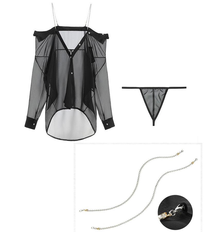 セット内容:シャツ、Tバック、肩紐のチェーンフリーサイズ/平置き実寸(約cm)