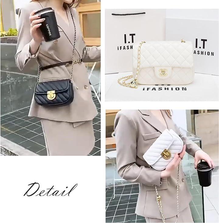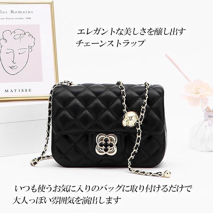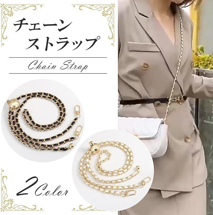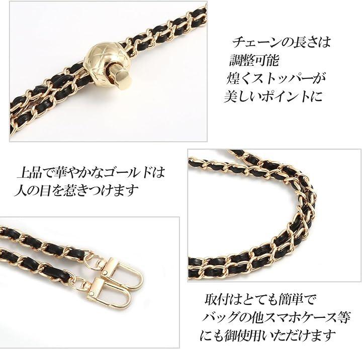 「外観」このショルダーストラップは、高品質のPUレザーと鮮やかなチェーンが組み合わさっています。