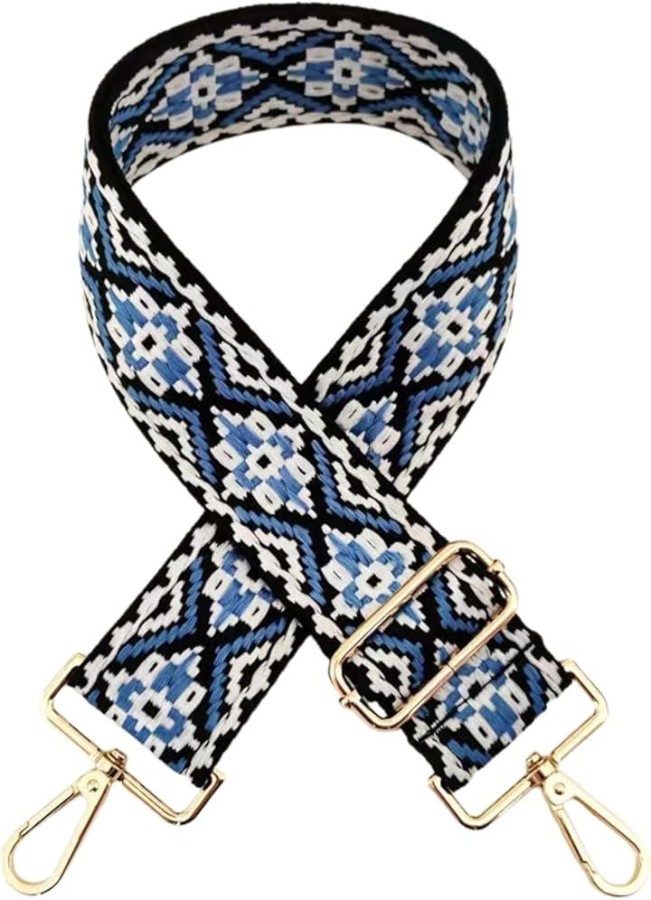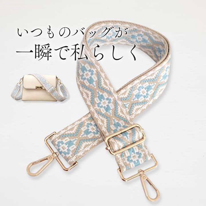 このショルダーストラップは、洗練された幾何学模様と刺繍風の花柄が魅力。