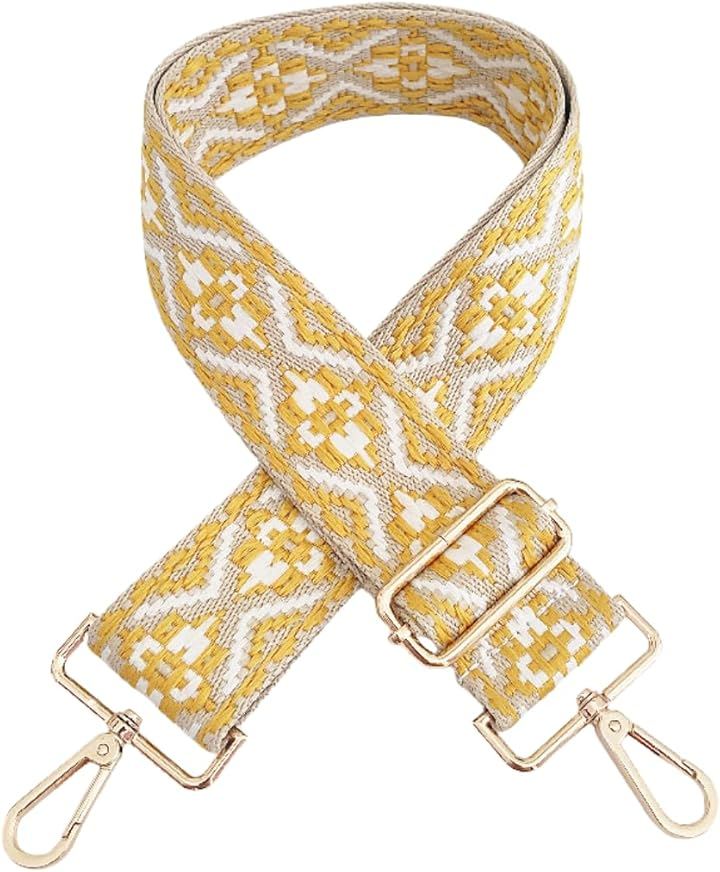 このショルダーストラップは、洗練された幾何学模様と刺繍風の花柄が魅力。