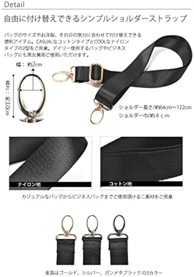 素材 コットンショルダータイプ ナイロンショルダータイプ カラー 金具部分/ゴールド シルバー ガンメタブラック