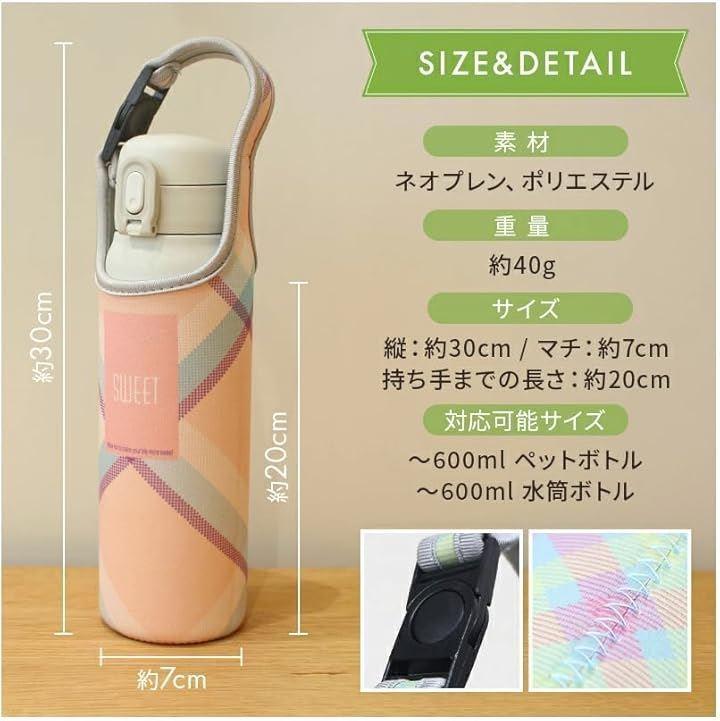 「仕様」 サイズ:約 高さ20cm(持ち手を除く)x直径約7cm、重量:約40g 対応サイズ~600ml水筒・ペットボトル。