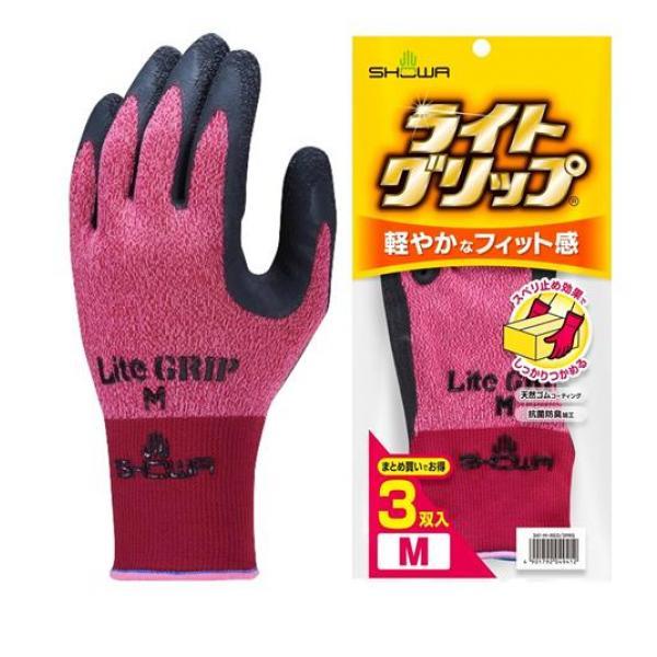 Showa Gloves No.341 Light Grip, Medium Size, Red, Pack of 3