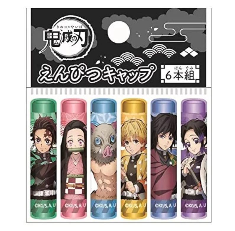 えんぴつキャップ6本組グリーン:竈門炭治郎ピンク:竈門禰豆子ライトブルー:嘴平伊之助イエロー:我妻善逸ブルー:冨岡義勇パープル:胡蝶しのぶ