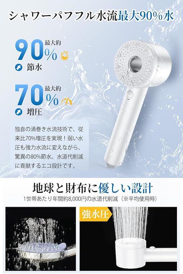 「プロ級水圧で頭皮ケア」高層マンションや水圧の弱い地域でも、独自の空気力学設計により280%の水圧アップを実現。