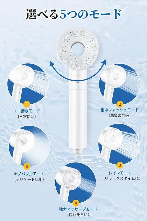 5つのモード切り替えで、目的に応じた最適な水流を提供。