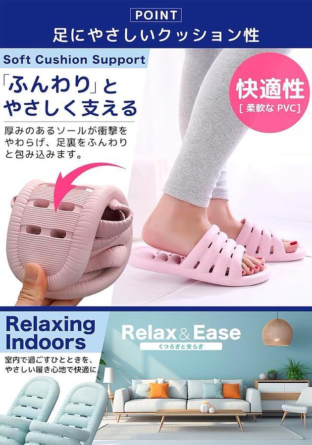 濡れてもすぐに水が抜け、スリッパ本体も乾きやすい設計。