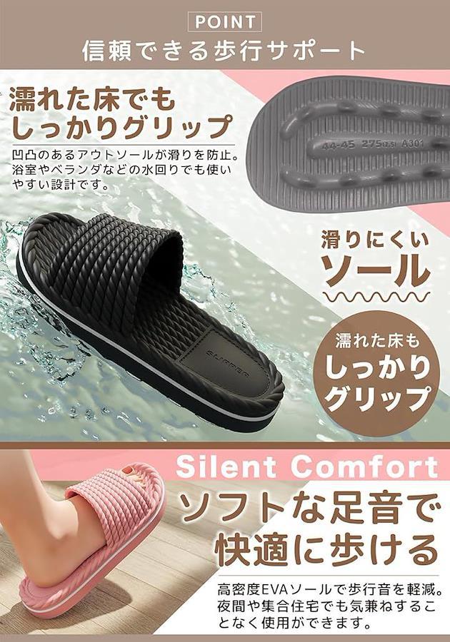 「夜間も安心」高密度EVAソールが歩行音を軽減。
