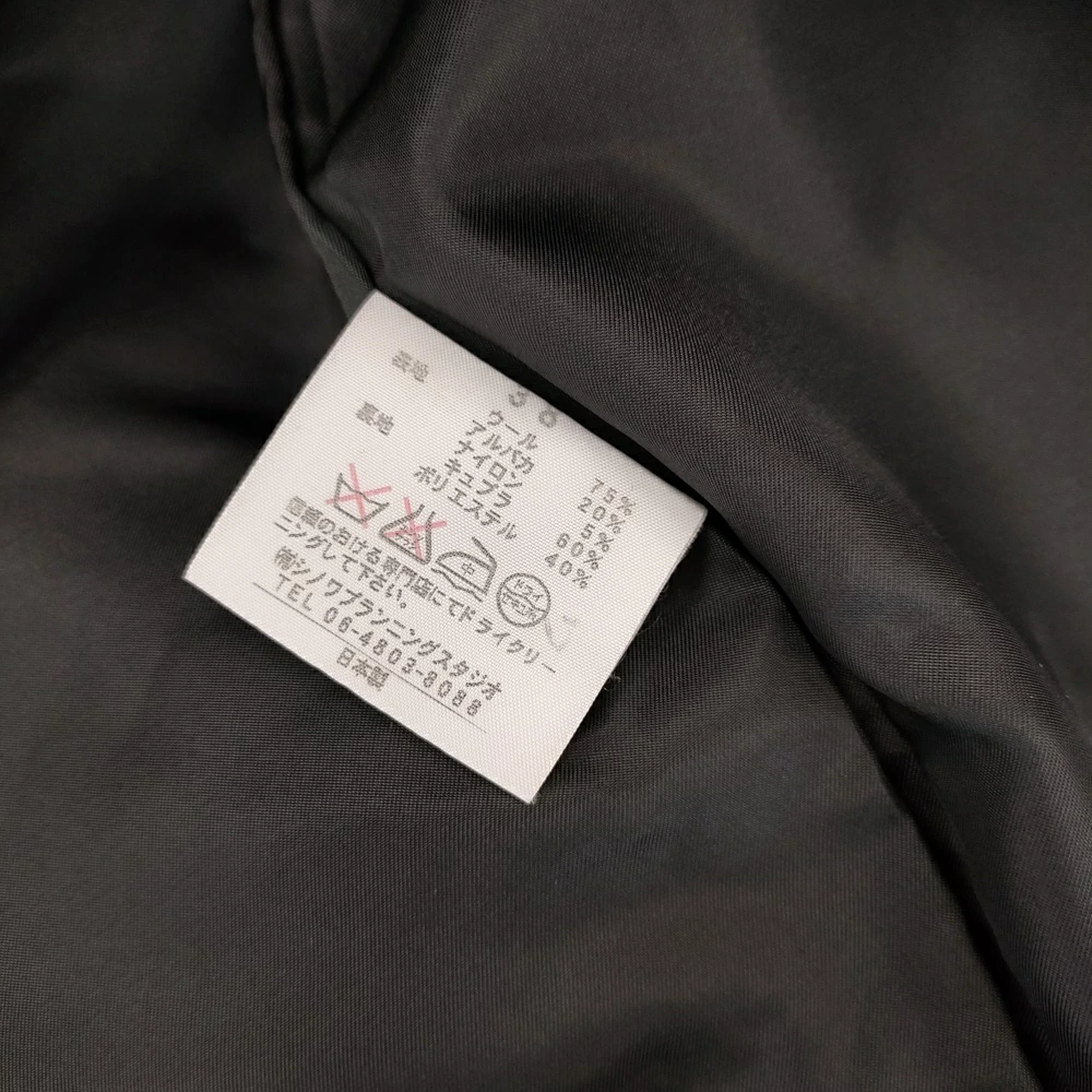 | 品質表示 | 表地:ウール75% アルパカ20% ナイロン5% 裏地:キュプラ60% ポリエステル40% |