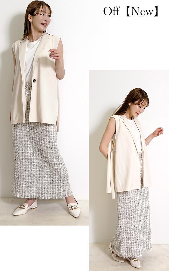梨地ポンチカットソー素材を使用したサイドベルトカットジレです。
