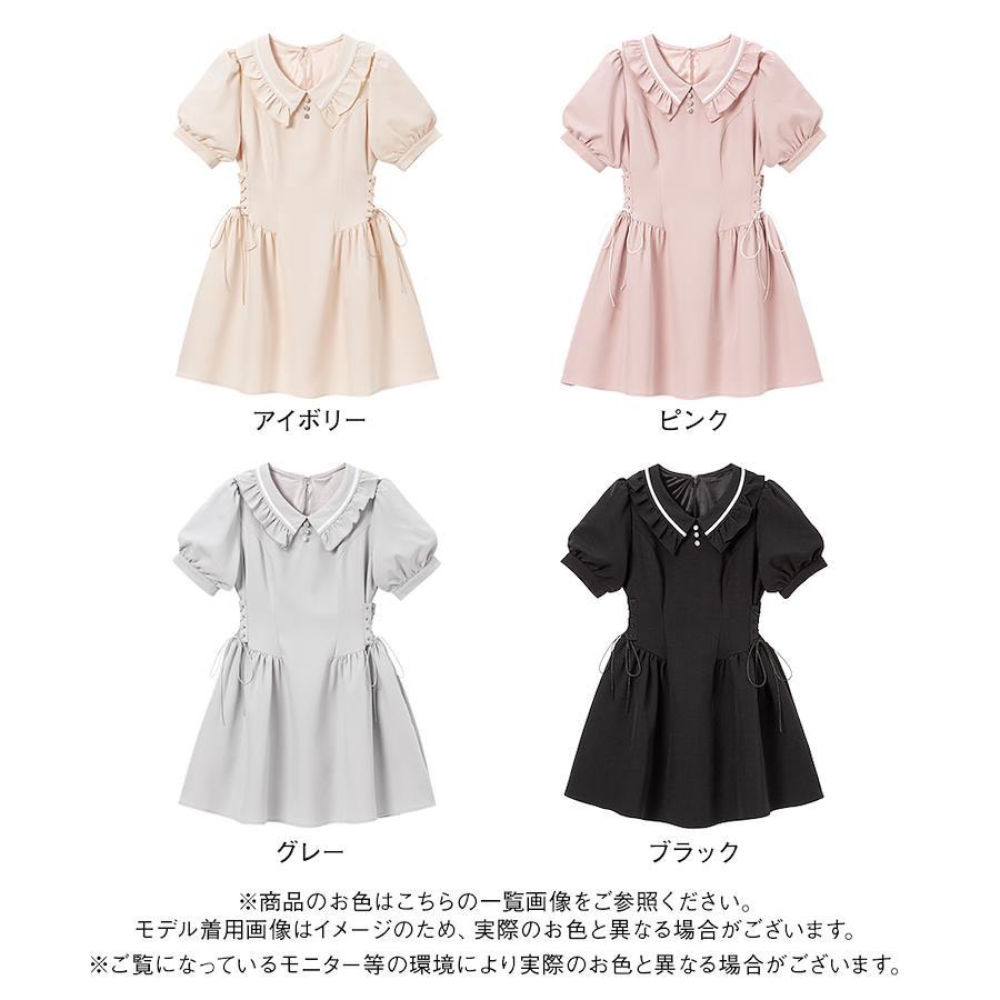 サイドレースアップにスカートのギャザー位置を低くすることで、コルセット感のあるデザインになりスタイルUP効果を狙いました!