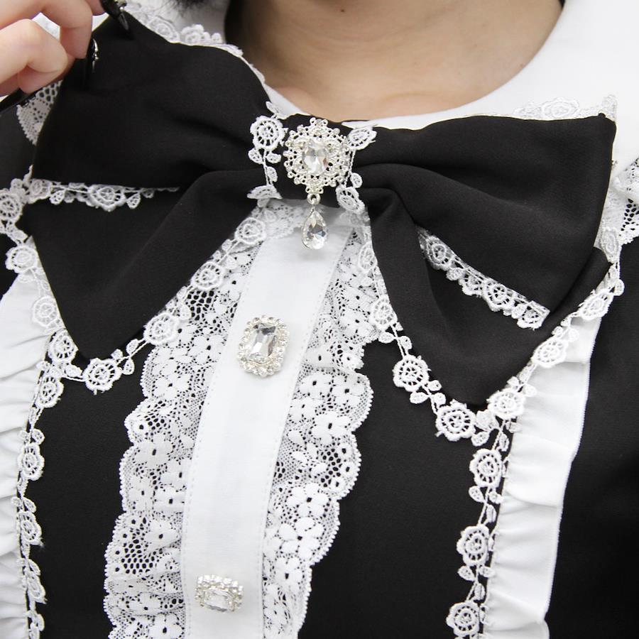大きいリボンにバラレースとかわいいキラキラビジューが付いています。