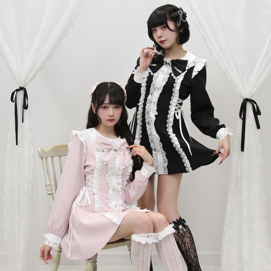 大きいリボンにバラレースとかわいいキラキラビジューが付いています。