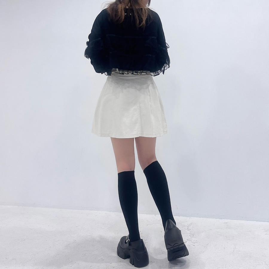 ピタッとしたカットソーやレーストップス等を合わせた、ちょっぴりお姉さんな韓国スタイルがおすすめ◎
