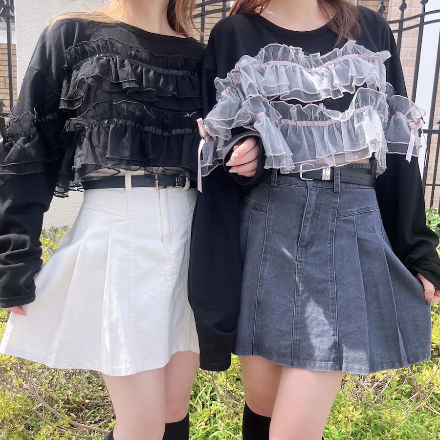 ピタッとしたカットソーやレーストップス等を合わせた、ちょっぴりお姉さんな韓国スタイルがおすすめ◎