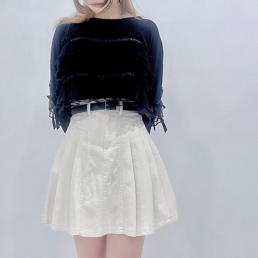 ベルトセットのサイドプリーツミニスカパンのご紹介。