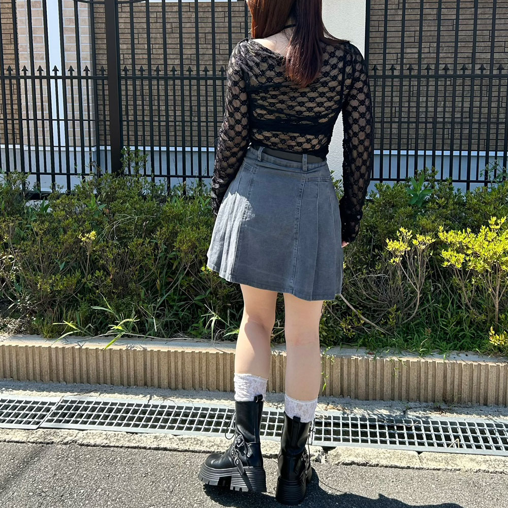 ベルトセットのサイドプリーツミニスカパンのご紹介。