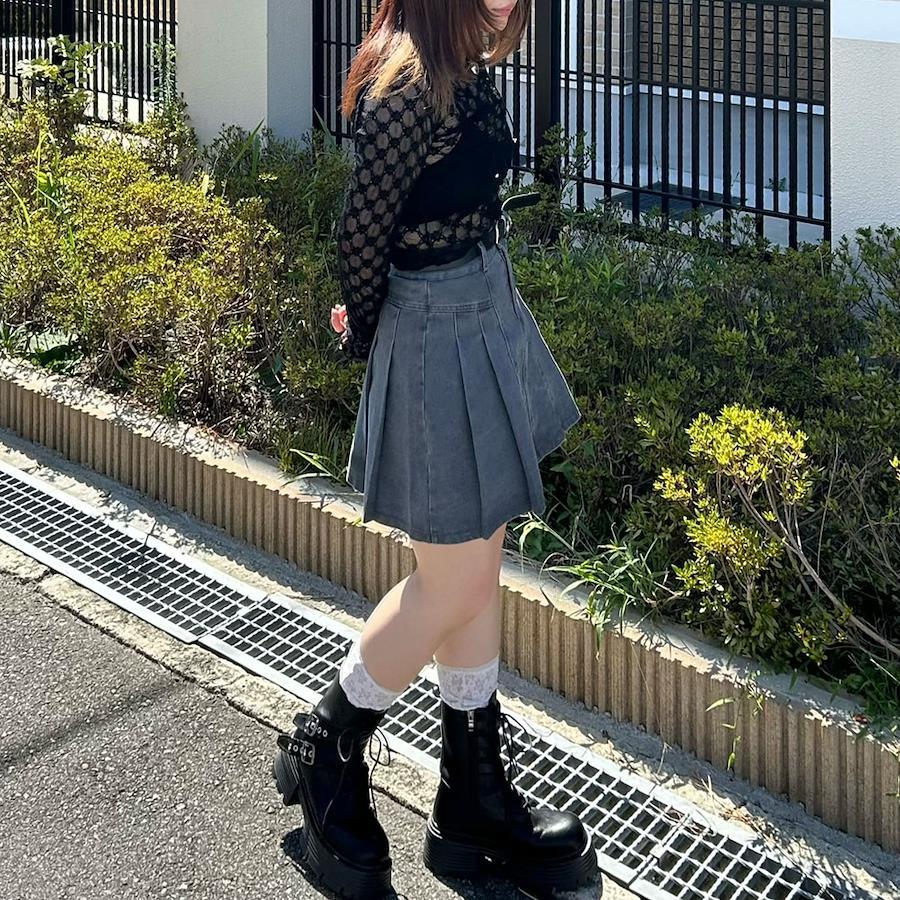 ピタッとしたカットソーやレーストップス等を合わせた、ちょっぴりお姉さんな韓国スタイルがおすすめ◎