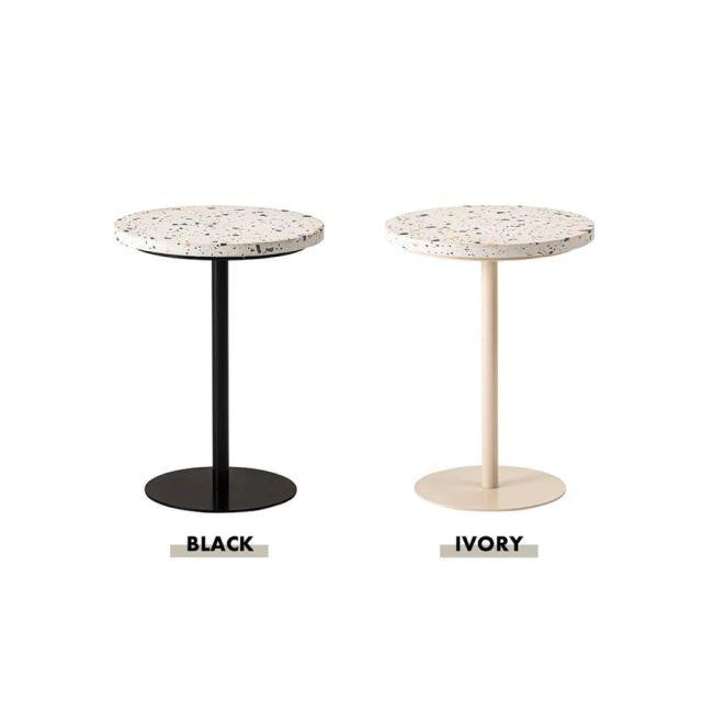 Side Table, 2 Colors: Black & Ivory, Round Top, Artificial Marble Terrazzo, W35 x D35 x H46cm, Sofa Side, Bedside, Display Shelf, Single Leg, Nightstand, Entryway, Compact, Stylish
