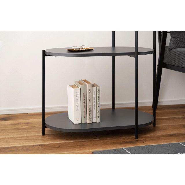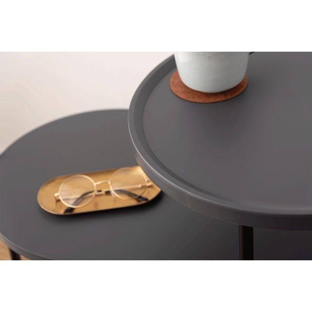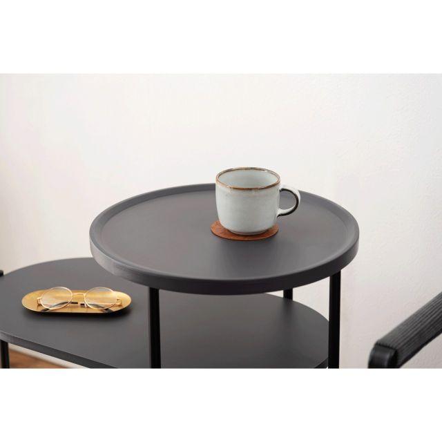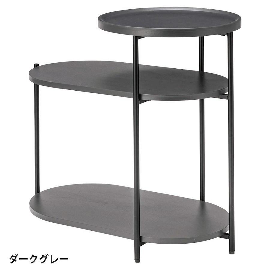 スリムなスチール脚と、しっとりと落ち着いた風合いの天板が、主張しすぎない上品な印象を演出。緩やかな曲線の天板を段違いに配した構成は、視覚的なリズムを生み出しながら、整理して置きやすい実用性も兼ね備えています。