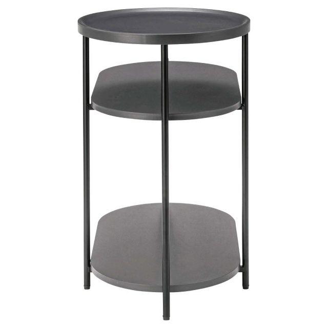 Side Table, 2 Colors: Dark Gray & Light Beige, Round Table, Nightstand, Compact, Living Room, Bedroom, Bedside, Stylish, Round Design, 3 Tiers, Korean Style