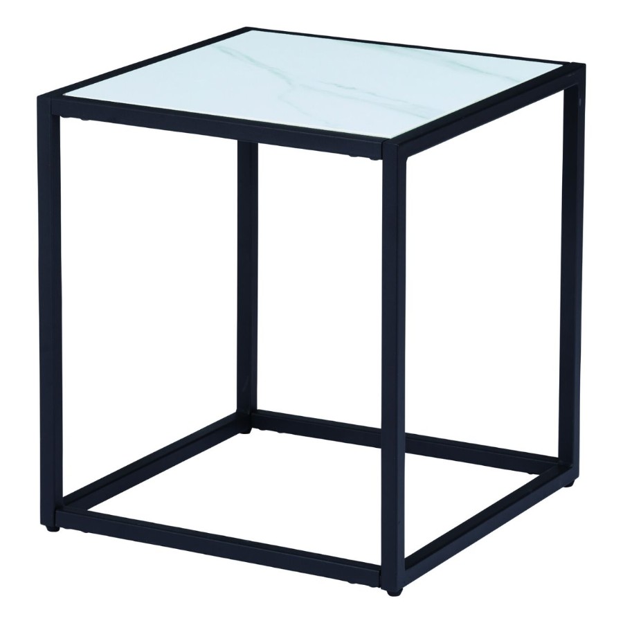 Side Table, 2 Colors: White & Gray, W45 x D45 x H50cm, Ceramic Top, 45cm Wide, Black Steel Legs, Nightstand, Coffee Table, Mini Table, Bedside Table, Sofa Side Table, Modern, Stylish.