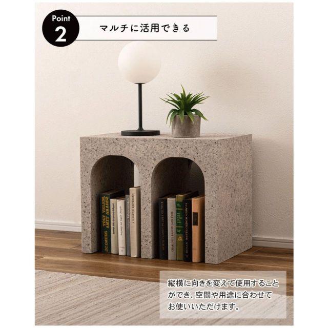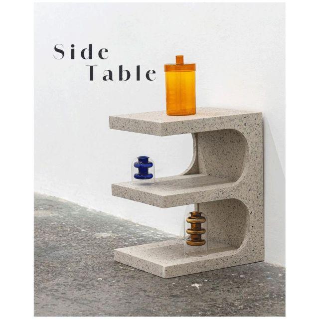 ●フォルムの美しい個性的なサイドテーブル。●オブジェのようなフォルムが特徴的な、存在感のあるサイドテーブル。●向きを変えて使うことで空間の印象も変化。●石のような質感のテラゾー柄はシックでモダンな雰囲気。