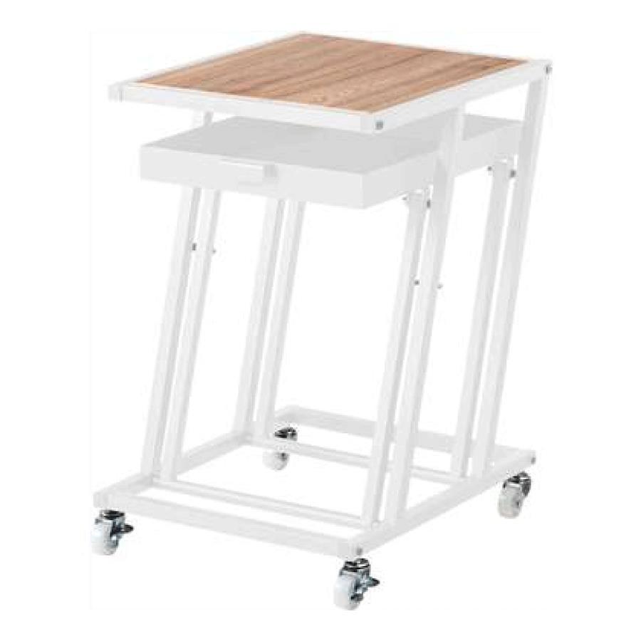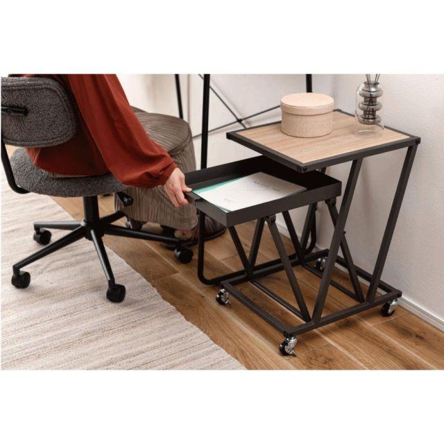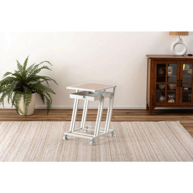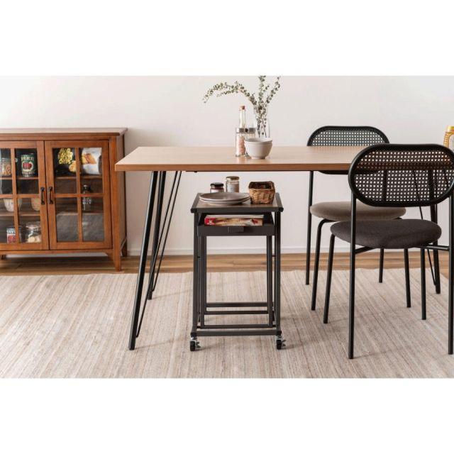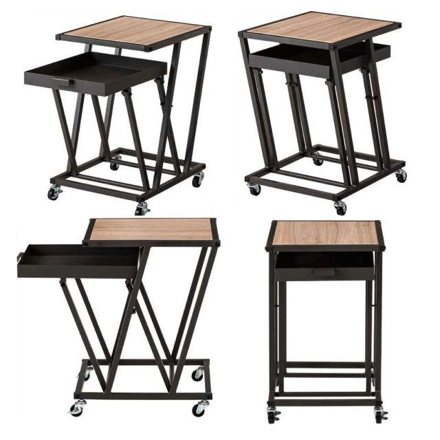 ダークグレー・ホワイトお部屋の雰囲気に合わせて選べる2色展開です♪●空間に馴染む、落ち着きと機能の調和。●シャープなスチールフレームと木目調の天板が魅力のサイドテーブル。●キャスター付きなので、必要な場所にさっと移動でき、空間に洗練された印象を与えます。