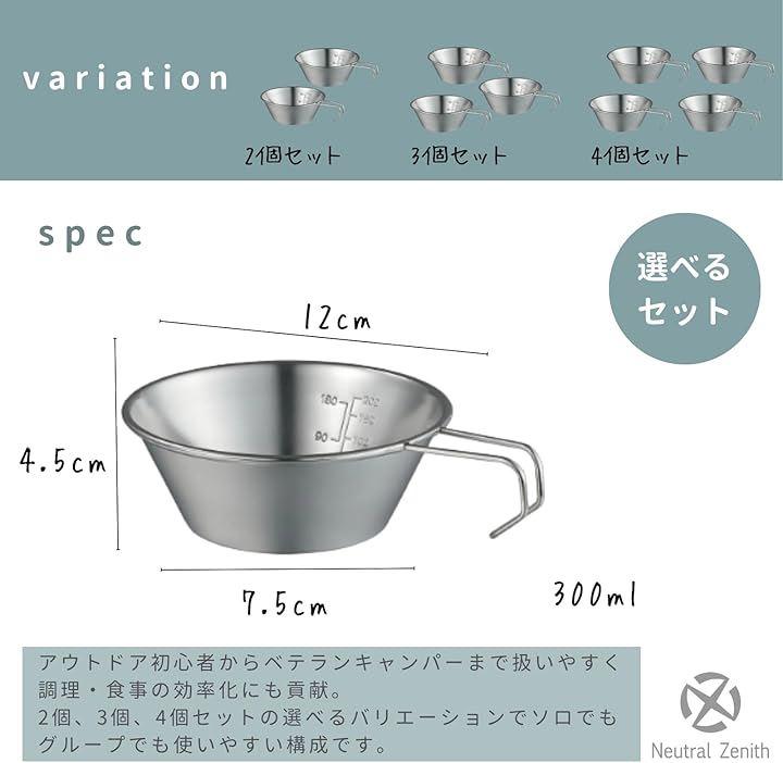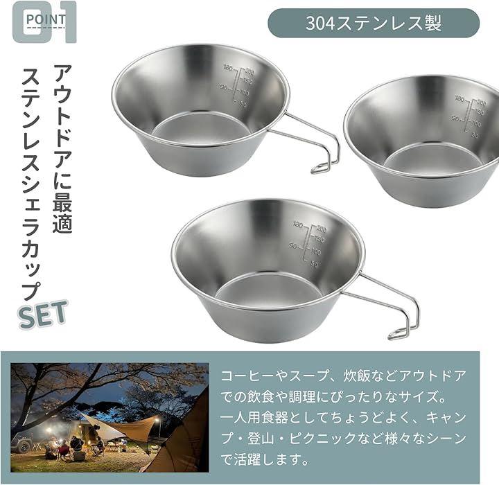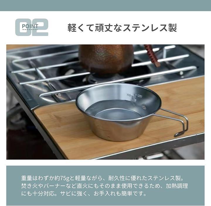 「アウトドアに最適なサイズのシェラカップ」満水容量約310mlのシェラカップは、コーヒーやスープ、炊飯などアウトドアでの飲食や調理にぴったりなサイズ。