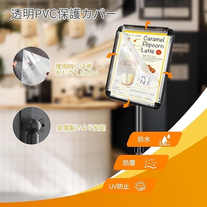 「透明PVC保護フィルム」案内板フレームには透明PVC保護カバーが付属しますので、ホコリ、指紋、雨、紫外線などからポスターを守ります。