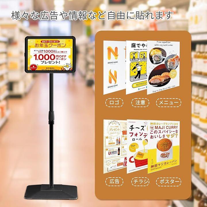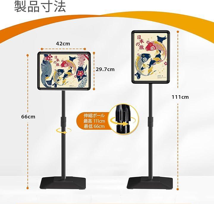 「看板の高さも角度も調整可能」看板のポールが伸縮可能のデザインで、グリップを回すと看板の高さが66-111cm場所によって自由自在調整できます。