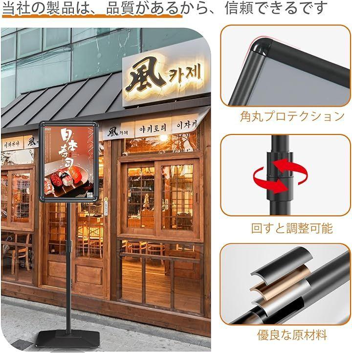 「看板の仕様について」立て看板高さ約660mm~1110mm (伸縮可能)。