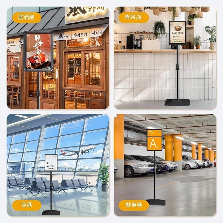 立て看板、メニュースタンド、ポスターパネルスタンド、 カフェ看板、屋外看板、会社情報板、掲示板、案内板などとして使用される。