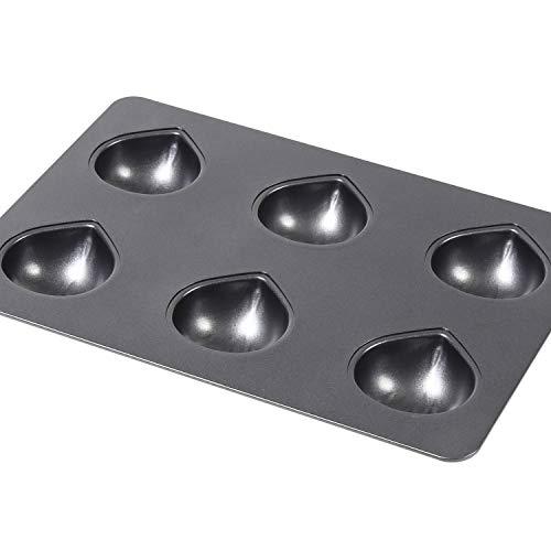定番のマロンケーキ型です。お手入れ簡単なシリコン加工でキレイに型抜けします。一度に6個焼けるので、 気軽に焼くことができます。サイズ(全体):300mm×200mm×高さ26mmサイズ(1カップ当たり):直径60mm×深さ60mm材質:素地/鉄(表面シリコン樹脂加工) 生産国:中国ご使用後は、洗ってよく水気を拭き取ってから保管して下さい。オーブンの余熱を利用するなどしてよく乾燥させて下さい。乾燥が 不十分だと錆びが発生する可能性があります。