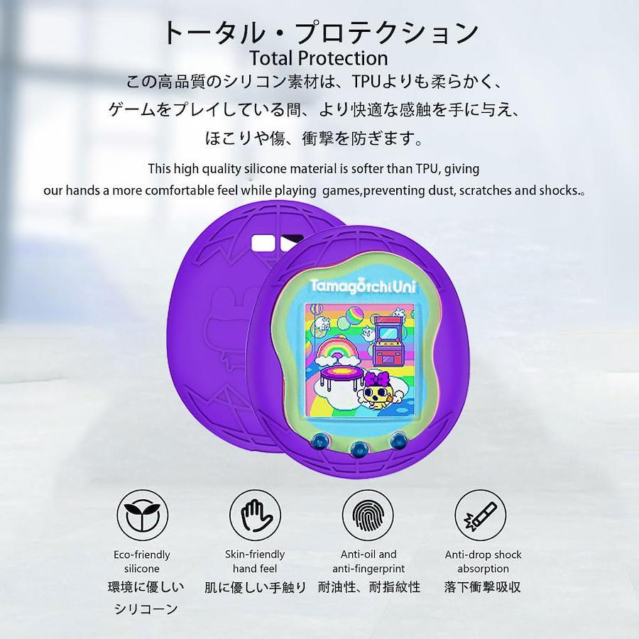 【対応機種】:たまごっち Tamagotchi Uni 用 シリコン 保護カバー。肌に優しいシリコンを使用した保護カバーで、柔らかく柔軟性があり、無臭です、手触りが良く、滑りにくく、操作性が良い。