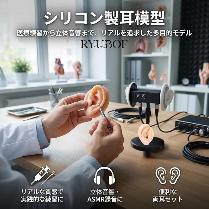 耳の形状をリアルに再現したこの耳模型セットは、医療の学習、創作、音響制作のいずれにも役立つ実用的なアイテムです。