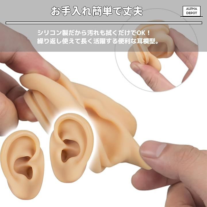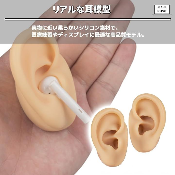 「リアルな質感のシリコン耳模型」実物に近い柔らかいシリコン素材で作られた耳模型。