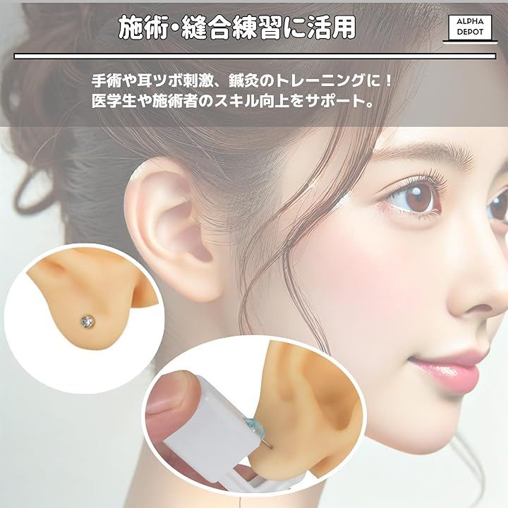 「縫合・施術練習に最適」手術や縫合、耳ツボ刺激、鍼灸などの練習用に最適な耳模型。