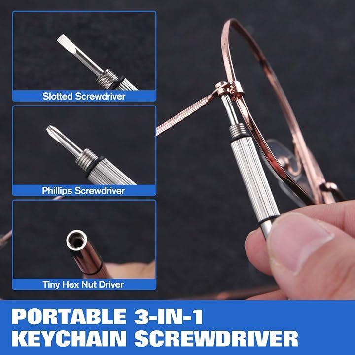 パッケージに含まれるもの:ノーズパッドプライヤーのアンロードプッシュ1個、毎日の眼鏡のメンテナンスに対応する3-in-1ミニ眼鏡ドライバー1個