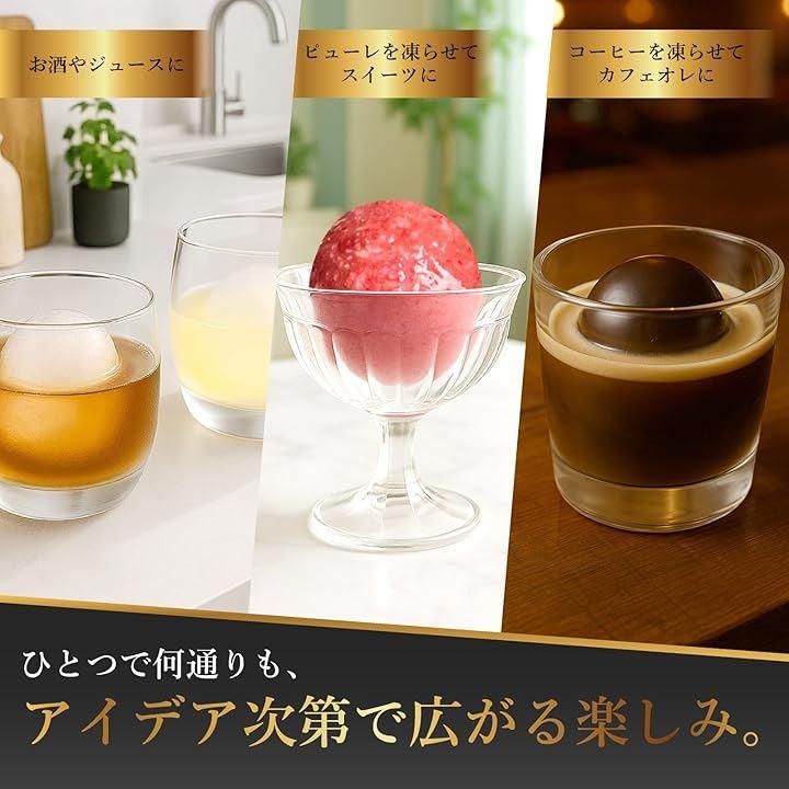 溶けにくい丸氷: 丸形の氷は表面積が少なく、ドリンクが薄まりにくいため、長時間楽しめます。